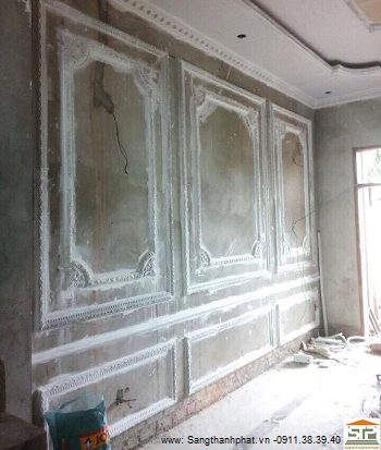Vật tư : tạo mẫu phù điêu, gắn đầu cột 02 đường kính 30cm, Consol nhỏ Cs08,Chỉ trần ctr03,hoa góc : hoa mai