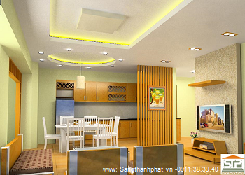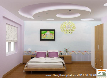 Trần thạch cao theo kiểu hiện đại,tạo cấp quanh kết hợp đèn hắt, mang lại vẻ đẹp sang trọng