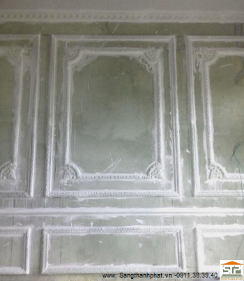 Vật tư : tạo mẫu phù điêu, gắn đầu cột 02 đường kính 30cm, Consol nhỏ Cs08,Chỉ trần ctr03,hoa góc : hoa mai